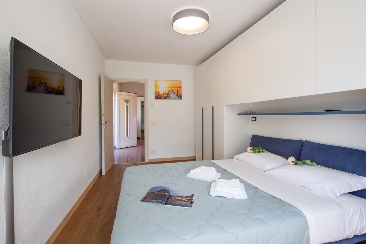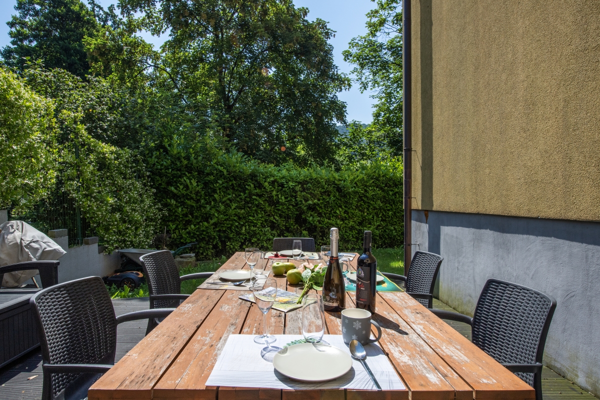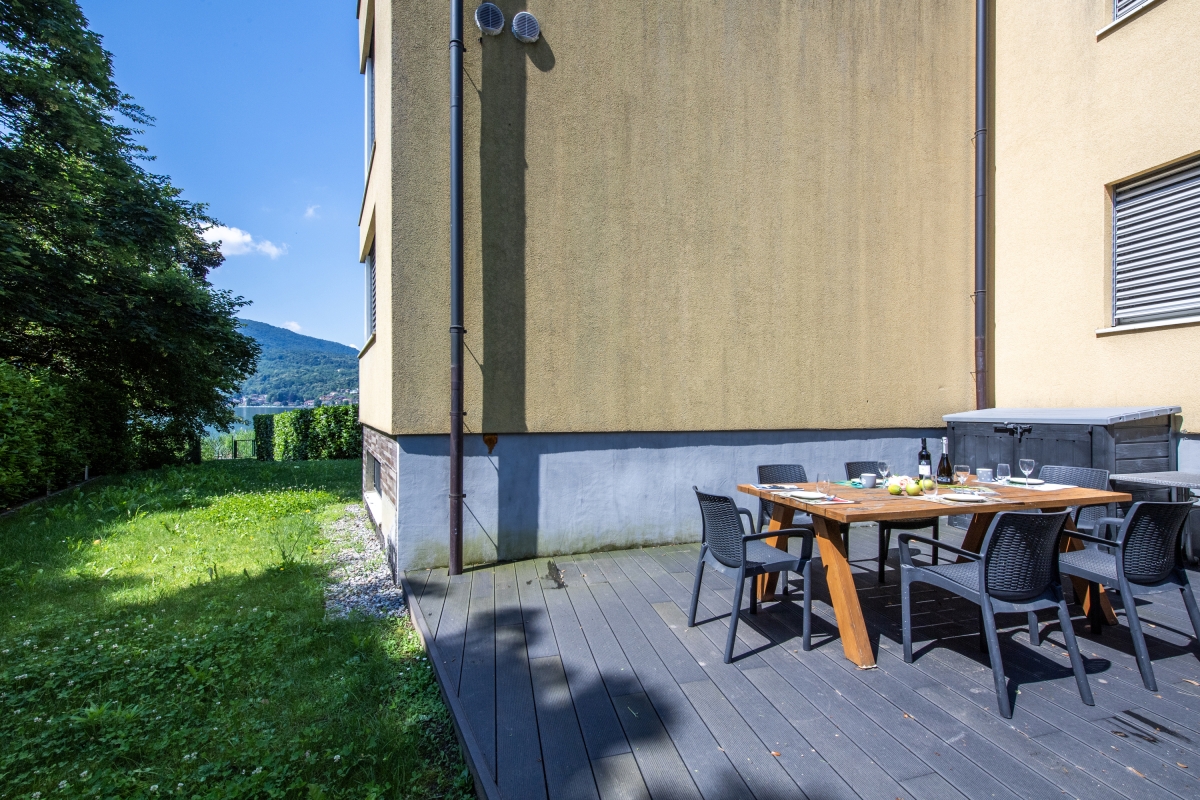 Escape to Lake Lugano with this lake-view garden villa just a 5-minute walk from the lakeshore! Located in the lakeside village of Caslano, with characteristic narrow streets and ancient buildings, this 2-bedroom holiday retreat is ideal for 4 guests. The modern villa offers an intimate garden with fencing, as well as alfresco dining, sun loungers and BBQ for enjoying time together on your vacation without any interruptions. Inside, the 2-level villa offers air-conditioning for comfy year-round stays. It has a modern and stylish living room with a flowy layout and a fully equipped kitchen diner for a carefree holiday. In the kitchen, guests will find everything they need to whip up delicious homemade meals: dishwasher, microwave, fridge, toaster and fridge with freezer. Sleeping Bedroom 1: A stylish lake-view bedroom with a double sofa bed. Bedroom 2: A modern lake-view bedroom with a double bed and wall-mounted TV. Bathroom Bathroom 1: The modern and stylish bathroom has a Jacuzzi, WC and bidet. Bathroom 2: The full bathroom has a Jacuzzi, a shower, WC and a bidet. Additional • Private Parking Space • Laundry and ironing facilities • Free Wi-Fi • Air-conditioning • Pets allowed • Private garden with open-air dining Location The holiday villa is located in the lovely ancient village of Caslano, where its narrow streets and historic churches create a very charming atmosphere to spend a relaxing holiday on Lake Lugano. From the holiday villa, the picturesque beauty of Lake Lugano is just a pleasant 5-minute stroll away, meanwhile, the Museo delle Culture is just a 10-minute walk from here. Guests can also easily visit the main attractions of the village like the Chocolate Museum in 2 minutes and the Museo della Pesca and Caslano Lido in 20 minutes on foot. Nearby, you'll also find charming local restaurants, cafes, and shops, providing convenient options for dining and entertainment. For nature enthusiasts, Monte Caslano offers breathtaking hiking trails, a mere 15 minutes away by car. Other romantic places to visit on Lake Lugano that are also perfect for day trips are within a 20-30 minutes drive away and include the prettiest village of Ticino, Morcote; the vibrant city with memorable sunsets, Lugano; and the picturesque little lake of Astano (also great for hiking). Bellinzona and Locarno can be within a 40-50 minutes car ride from here. Milan Malpensa is the nearest international airport, approximately a 1-hour drive from this holiday villa in Caslano.