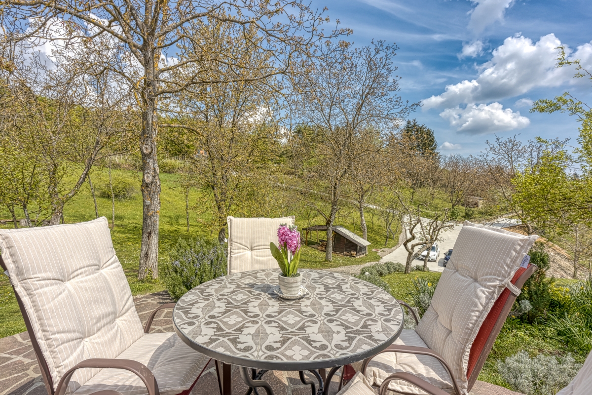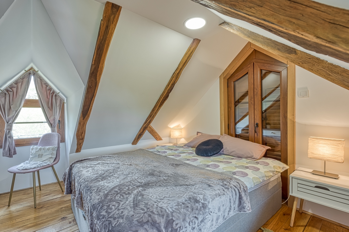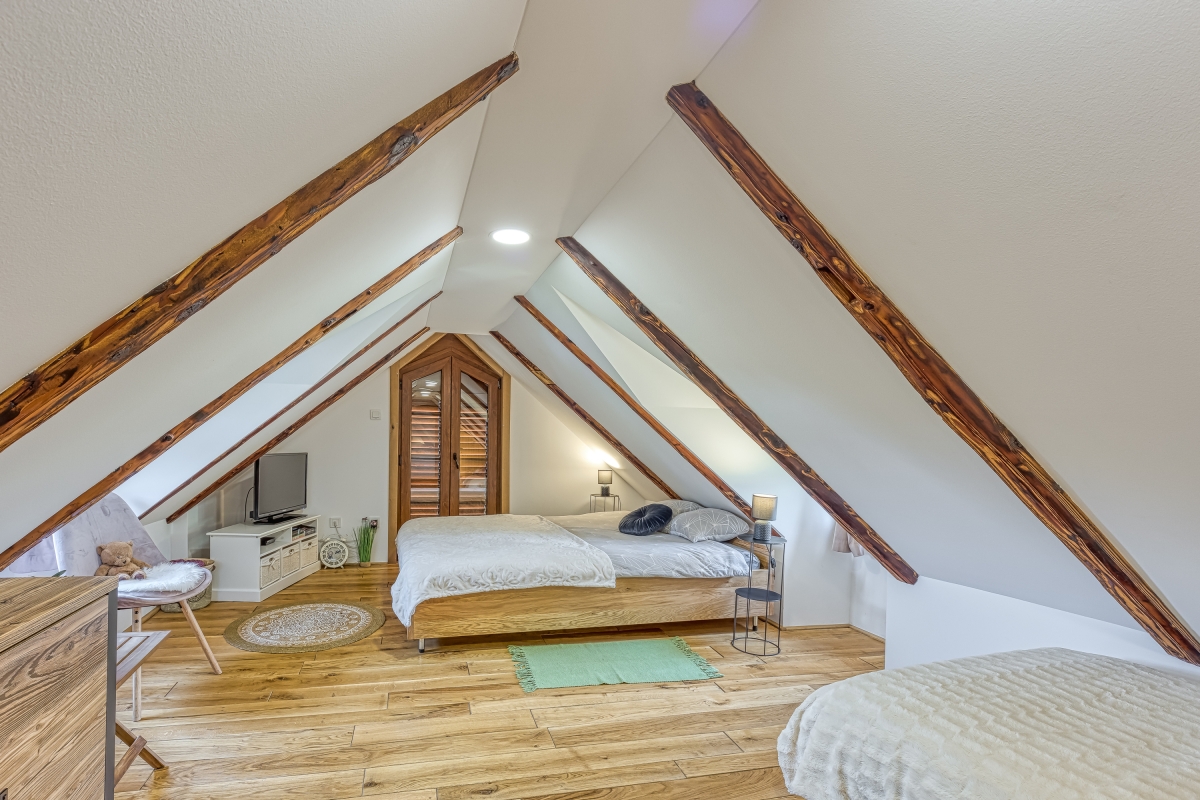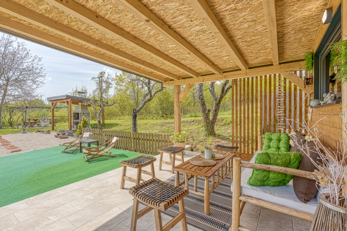 Live the ultimate holiday experience at this wellness retreat for family and friends! Ideally located and equipped with fabulous recreational and relaxation amenities, this traditional holiday house is the perfect venue to find your inner peace and true joy. This eco-friendly house is made entirely from wood and sustainable materials and has been recently renovated, keeping the traditional elements with a modern touch. Besides the main house, there is an ambient wooden Spa house with an indoor Jacuzzi. The lush outdoor area also has hammocks for relaxation as well as open-air dining and a wood-fired BBQ that perfectly complements the house’s sun-bathed and blissful location. Additionally, there are entertainment facilities like badminton, football and swings available for those coming with kids! At the ground level of the main house, you can find the living area with a dining table and a very well-equipped kitchen with a microwave, toaster and fridge with freezer for a carefree stay. The single property has 2 bedrooms and it can host up to 7 guests. Sleeping Bedroom 1: A spacious balcony bedroom with a double bed, a single bed and a wardrobe. Bedroom 2: A balcony bedroom with a double bed and wardrobe. Extra: There is a double sofa bed in the living room to sleep 2 guests. Bathroom Bathroom 1: The bathroom has a shower and WC. Additional • Private Parking • BBQ • Hair Dryer • Extra Child-Friendly • Ironing Facilities • Private Garden • Flatscreen HDTV • Installed Wi-Fi (chargeable) Location The house is located in the very quiet countryside of the lovely town of Sveti Ivan Zelina. Guests have a wide range of options, like touring the nearby historical sites and wineries, dining at delectable local establishments, and cycling or hiking through untamed nature. It takes only 45 minutes to get to central Zagreb. A day trip to the city's markets, church, and museums is highly recommended. The city of Varazdin is an additional choice (45 minutes); one of the best daily markets in northern Croatia is found in Varazdin. It features more than 300 booths where you can purchase the finest regional goods. The holiday home is about 35 minutes from Zagreb's Franjo Tuđman International Airport.