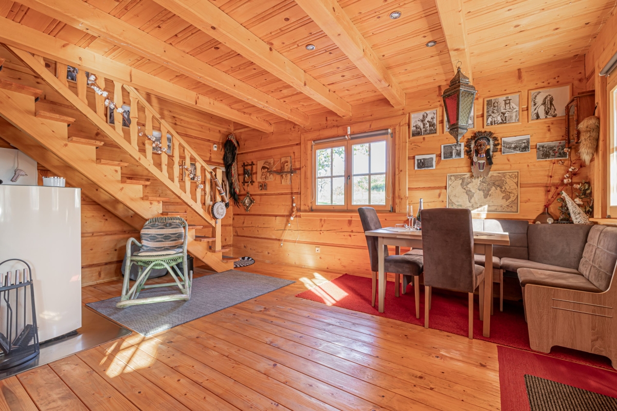 Rolling hills, vineyards, fields and forests. Quietly nestled on a leafy hillside, deep in the Slovenian countryside, this idyllic retreat is the perfect blend of rustic charm and modern comforts. Whether you're looking for a romantic getaway, a family vacation, or a solo retreat this tranquil escape for four, situated in the heart of nature is the ideal choice. The picturesque cabin is constructed from beautiful, handcrafted logs and is architecturally designed to seamlessly blend into its surroundings – guests will enjoy the quaint front porch that provides the perfect spot for a morning coffee or stargazing at night. The interior exudes the welcoming rustic atmosphere of a traditional log cabin. The open-plan kitchen and dining space features a comfortable seating area with a wood-burning fireplace and a breakfast bar. The modern kitchen is fully equipped with; a cooker hob, an oven, a microwave and a fridge freezer. The living room is situated within one of the bedrooms on the top floor and is furnished with a large corner sofa and a flatscreen digital HDTV, here guests will also find a small sauna, the perfect place to unwind and detoxify in this tranquil forest setting. This room also enjoys access to a small balcony. Sleeping Bedroom 1: The bedroom is furnished with a double bed Extra: There is a comfortable double bed in the living room Bathrooms: Bathroom 1: The bathroom is fitted with a shower, a washbasin and a WC Additional • Mountain view • Private Garden • Shared Garden • Balcony • Terrace • Outside dining • Outside seating • BBQ • Free Wi-Fi • Airconditioning • Central heating • Sauna • Laptop Friendly Workspace • Car recommended • Private parking • Close to skiing • Child friendly • Pets possible • Smoking is prohibited Extra Costs There is a tourist tax of €2 per person per day, to be paid on arrival Location The property is located in Lastnič, Podčetrtek, close to Brezovec pri Polju a small settlement not far from the Croatian border in East Slovenia. The immediate area is known for its vineyards and visitors can consider exploring local wineries and tasting some of the delicious Slovenian wines. Vina Mramor - Vinotoč Gruska is a 5-minute drive from the property and Vino Kralj, Boutique Wine Cellar is approximately a 15-minute drive away. Outdoor enthusiasts will want to head to Vetrna harfa (a 15-minute drive) the trail leads visitors to a dry meadow at the top of a hill with biodiverse flora and fauna. At the very top, there is a wind harp, a love bench and binoculars to enjoy the incredible views. The hiking area of Ravni Log is also a 30-minute drive from the property. Those in search of complete relaxation will enjoy the town of Čatež ob Savi (a 40-minute drive) renowned for its thermal springs, which have been used for centuries for their healing properties. The town is home to one of the largest and most popular thermal spa resorts in Europe. There is also a water park here that is especially popular with families and children. The closest international airport to the accommodation is Maribor Edvard Rusjan Airport (MBX) approximately a one-hour drive away.