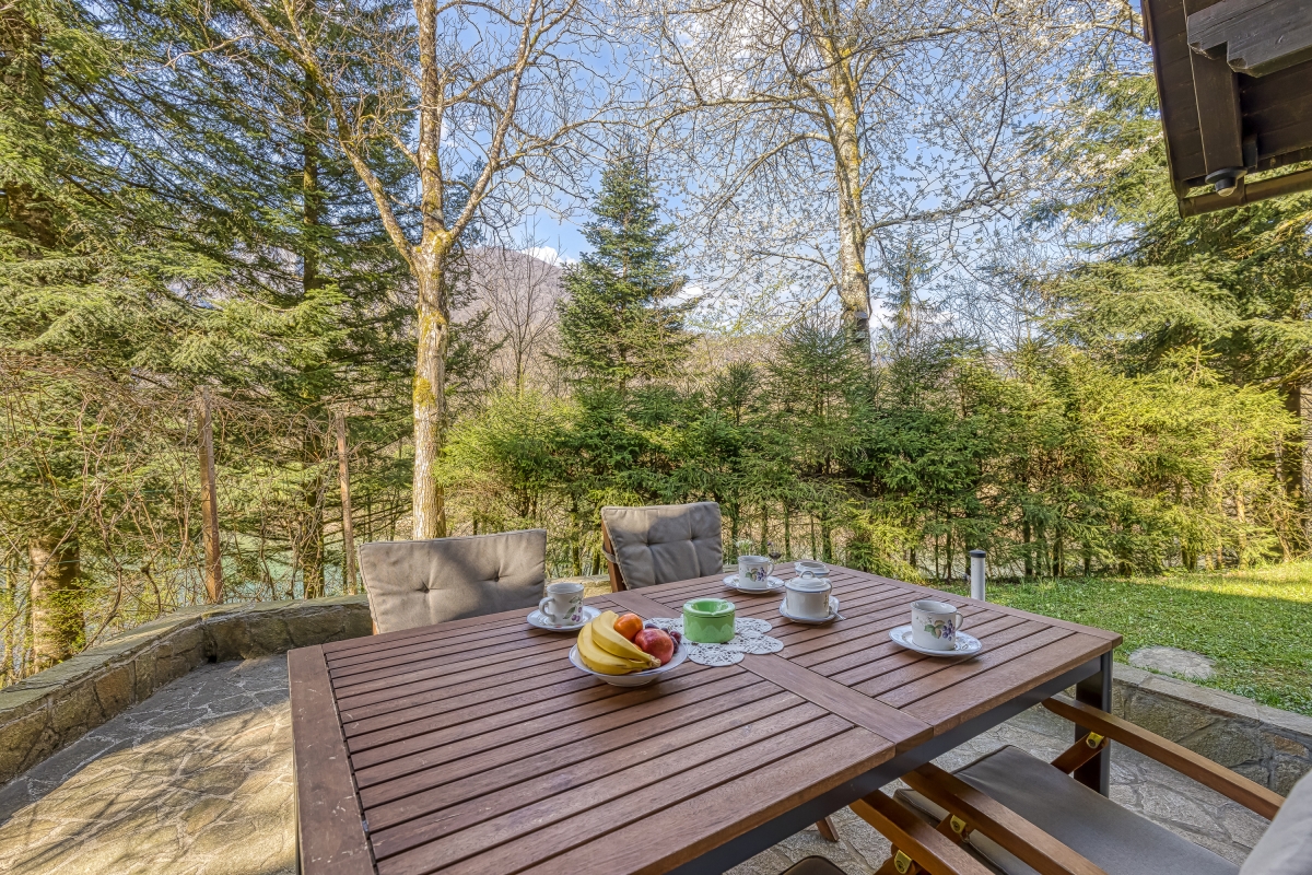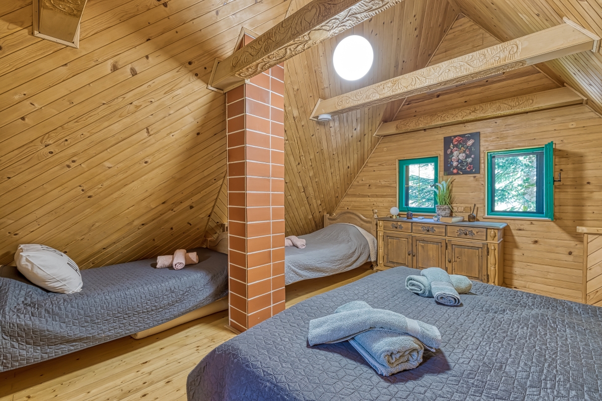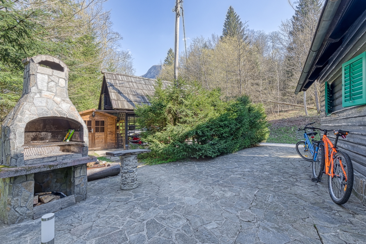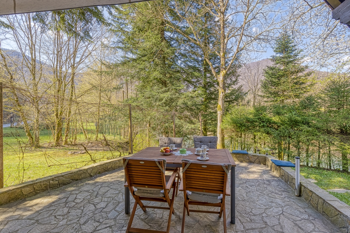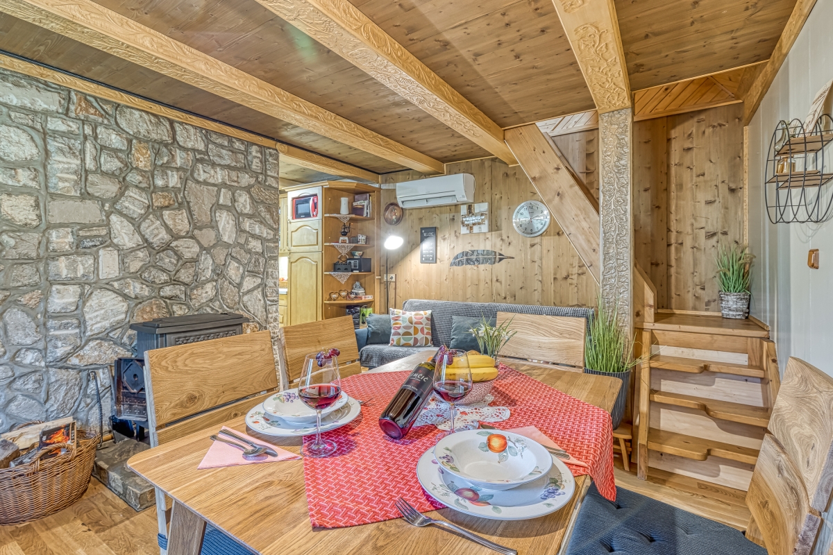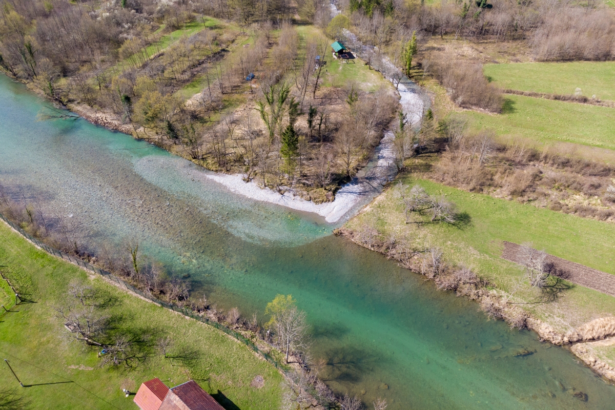 A picture-perfect, romantic cottage, in a small hamlet, nestling between the forest and the River Kolpa, which offers an ideal retreat for up to 5 people who want to escape from it all. Surrounded by trees, just 5 metres from its own private beach on the river, the house is entirely made of wood inside and out. The ground-floor open-plan living area with wooden floors and ceilings has a stove, a sofa and a flat-screen TV. A wooden corner staircase leads to the upstairs bedroom. The kitchen is just off the living room and is equipped with an induction hob, microwave, oven, dishwasher, fridge/freezer and coffee machine. The outside space is as beautifully laid out as the interiors. There is a Finnish sauna, reached via the terrace. The raised stone terrace is furnished with a dining table and chairs for relaxed meals al fresco. An outdoor staircase leads up to the balcony. Further away from the house are two sun loungers, a BBQ and a summer house. Sleeping Bedroom: Tucked under the wooden eaves the bedroom has a double bed and a single bed, with an antique wardrobe. A door leads out to the carved wooden, covered balcony overlooking the river. Extra: The sofa in the living room converts into a comfortable double bed Bathroom The tiled bathroom has a glass shower, basin and WC. Additional • Free Wifi • Smart TV • Tablet • Air conditioning • Central heating • Washing machine • Sauna • BBQ • Outdoor dining area • Private garden • Child-friendly • Suitable for elderly guests • Pets possible • Private parking – car essential • 2 bicycles and an electric scooter are available • Outdoor games • Indoor toys • Close to skiing • Tourist tax of €2.00/per person/day to be paid locally. Location The cottage is on the Kolpa River which marks Slovenia’s southern border with Croatia. This unspoiled region is known for its mighty forests, waterfalls, mountains and castles. There is so much for visitors to see and do. With many hiking trails through gorgeous landscapes, as well as scenic cycling routes. The pristine river offers fishing, rafting and kayaking. There is also tennis and even paintballing nearby. The town of Petrina is 5 minutes away. The town’s bridge over the River Kolpa leads over to Croatia, to the town of Brod Na Kupi. Ljubljana’s international airport is 1 hour 45 minutes away.