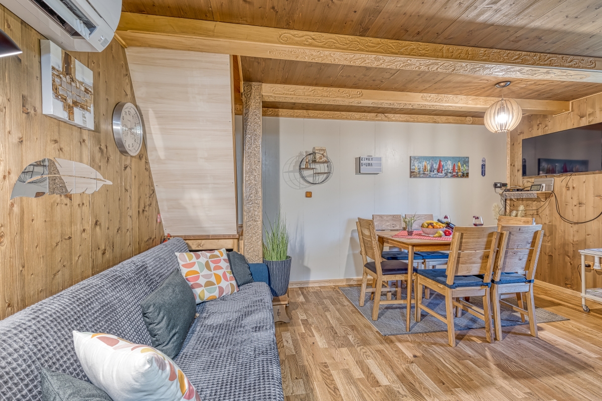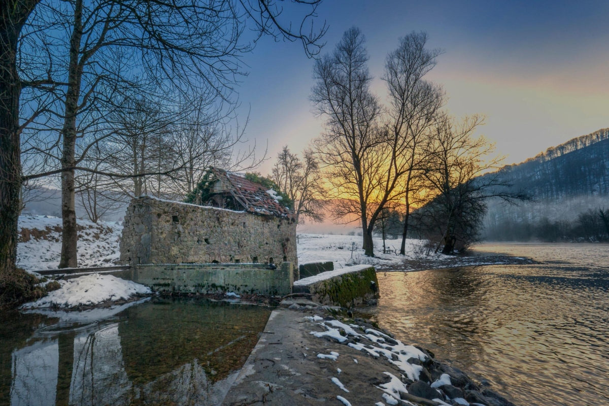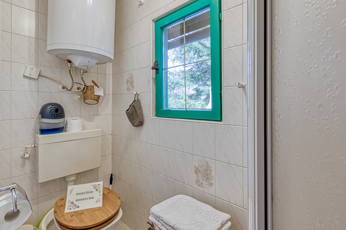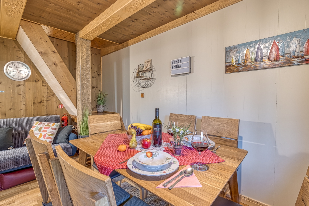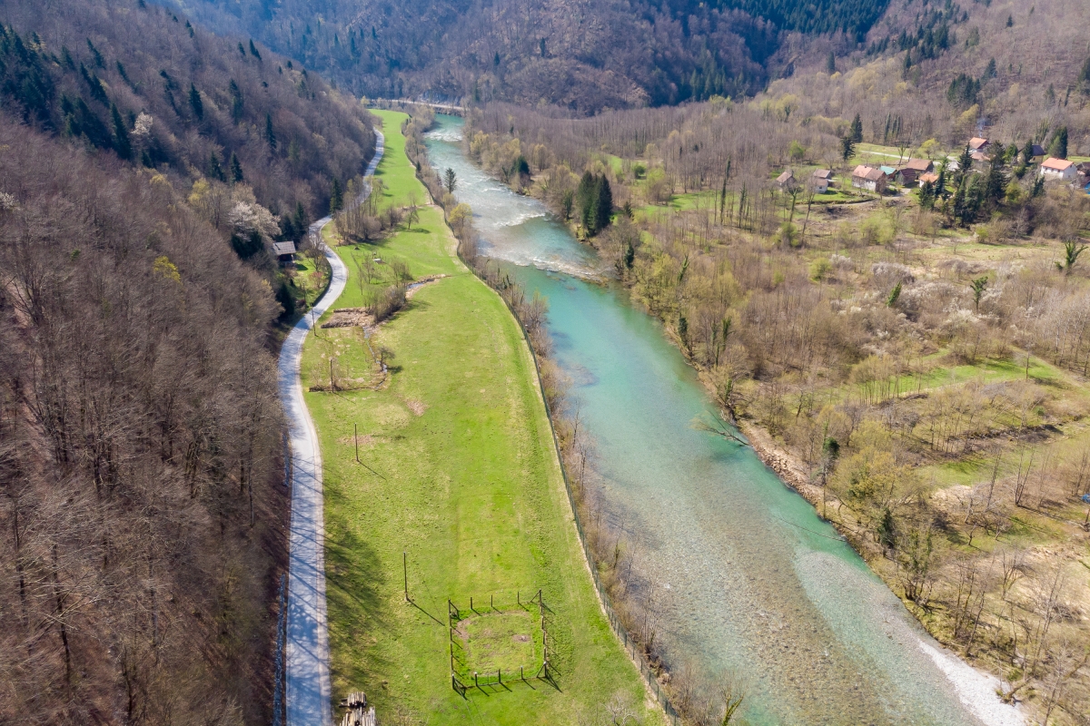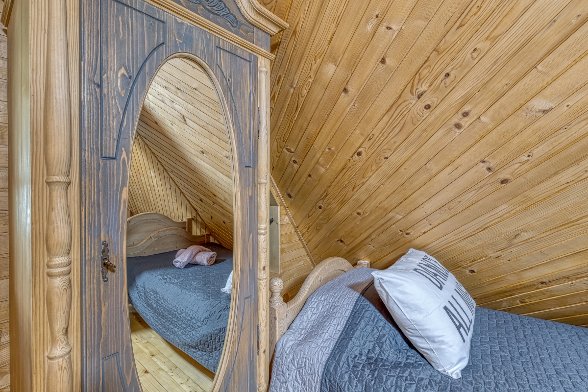 A picture-perfect, romantic cottage, in a small hamlet, nestling between the forest and the River Kolpa, which offers an ideal retreat for up to 5 people who want to escape from it all. Surrounded by trees, just 5 metres from its own private beach on the river, the house is entirely made of wood inside and out. The ground-floor open-plan living area with wooden floors and ceilings has a stove, a sofa and a flat-screen TV. A wooden corner staircase leads to the upstairs bedroom. The kitchen is just off the living room and is equipped with an induction hob, microwave, oven, dishwasher, fridge/freezer and coffee machine. The outside space is as beautifully laid out as the interiors. There is a Finnish sauna, reached via the terrace. The raised stone terrace is furnished with a dining table and chairs for relaxed meals al fresco. An outdoor staircase leads up to the balcony. Further away from the house are two sun loungers, a BBQ and a summer house. Sleeping Bedroom: Tucked under the wooden eaves the bedroom has a double bed and a single bed, with an antique wardrobe. A door leads out to the carved wooden, covered balcony overlooking the river. Extra: The sofa in the living room converts into a comfortable double bed Bathroom The tiled bathroom has a glass shower, basin and WC. Additional • Free Wifi • Smart TV • Tablet • Air conditioning • Central heating • Washing machine • Sauna • BBQ • Outdoor dining area • Private garden • Child-friendly • Suitable for elderly guests • Pets possible • Private parking – car essential • 2 bicycles and an electric scooter are available • Outdoor games • Indoor toys • Close to skiing • Tourist tax of €2.00/per person/day to be paid locally. Location The cottage is on the Kolpa River which marks Slovenia’s southern border with Croatia. This unspoiled region is known for its mighty forests, waterfalls, mountains and castles. There is so much for visitors to see and do. With many hiking trails through gorgeous landscapes, as well as scenic cycling routes. The pristine river offers fishing, rafting and kayaking. There is also tennis and even paintballing nearby. The town of Petrina is 5 minutes away. The town’s bridge over the River Kolpa leads over to Croatia, to the town of Brod Na Kupi. Ljubljana’s international airport is 1 hour 45 minutes away.