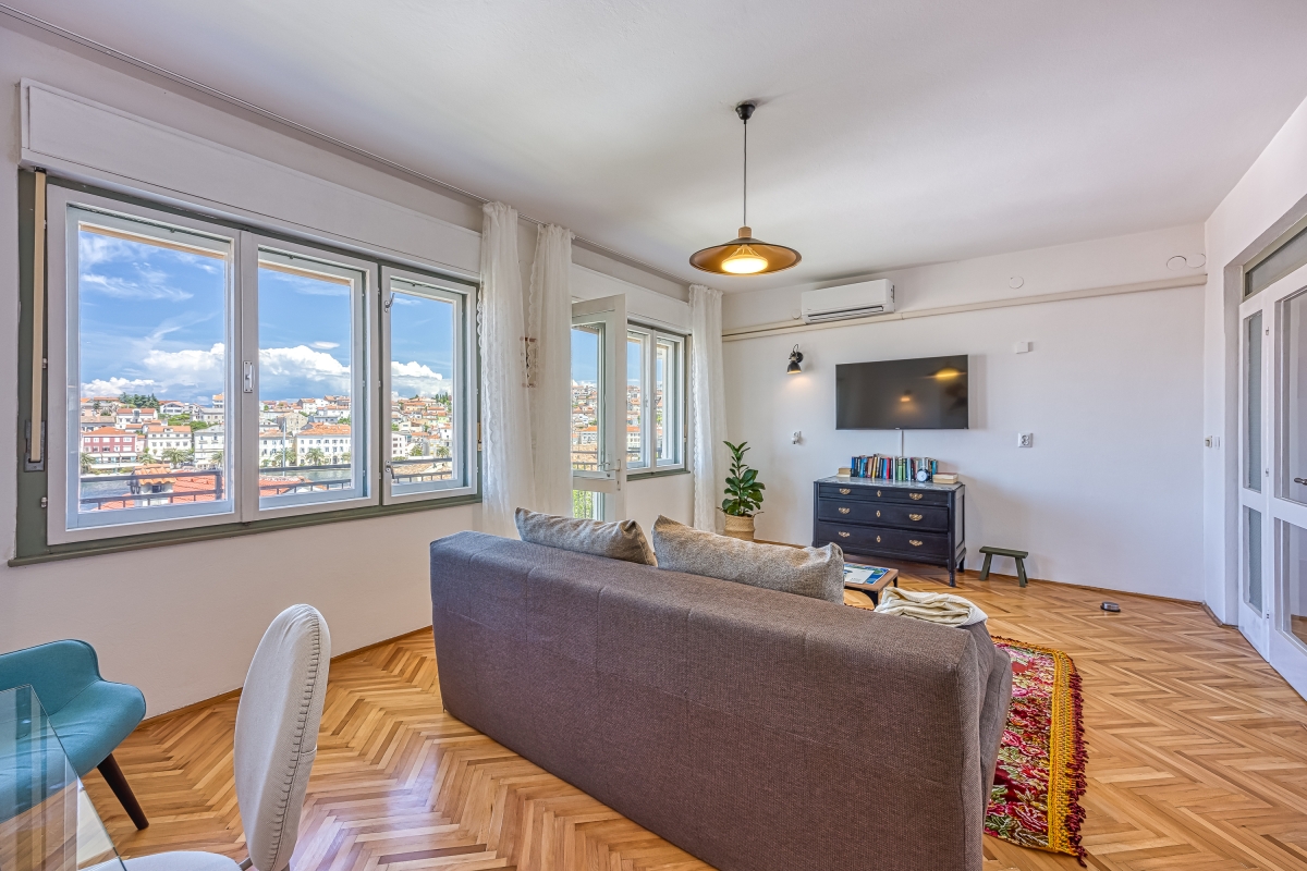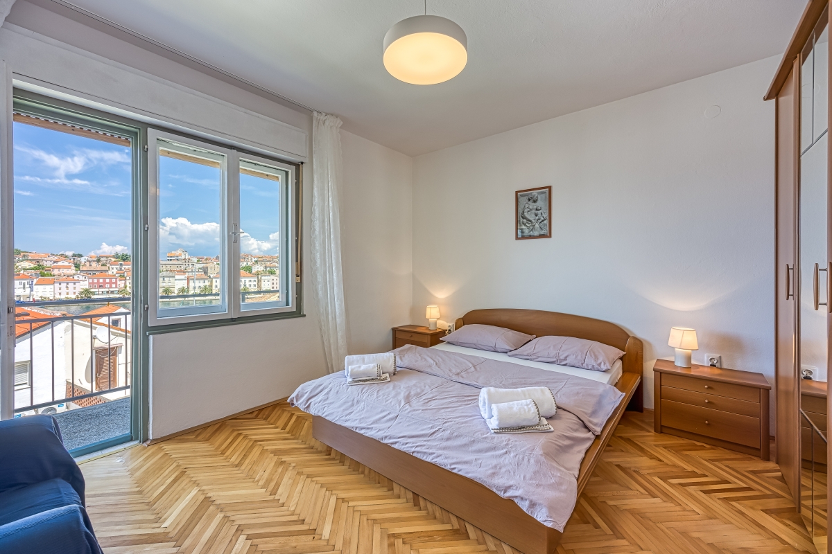 Enjoy an unbeatable central location in Mali Lošinj at this balcony holiday apartment for 3! Located just a stone’s throw from the town centre on one side and the famous Čikat Bay on the other, this 2-bedroom retreat will provide an effortless island vacation and beach escape. The first-floor apartment enjoys an exclusive access garden and private balcony with lovely harbour-view open-air seating to relax. Inside, the apartment is air-conditioned and fully furnished with a living area with a flat-screen TV, dining table and a separate, well-equipped kitchen to take on any meal preparation. Guests will find an induction hob, Tassimo coffee machine, oven, dishwasher and fridge with a freezer at their disposal. Sleeping Bedroom 1: A spacious balcony bedroom with a double bed and wardrobe. Bedroom 2: A cosy bedroom with a single bed and wardrobe. Living room: The sofa in the living room sleeps 1 guest. Bathroom There are 2 bathrooms in the apartment; both fitted with a shower and WC. Additional • Baby bed available on request • Free Wi-Fi • Air-Conditioner • Hairdryer • 20 external steps • Private balcony with seating • Laptop-friendly Workplace • Open Private Parking Location Located in the centre of Mali Lošinj, just a short walk from the apartment, you'll find the azure waters of the Adriatic Sea at the famous Čikat Bay, inviting you to indulge in swimming, sunbathing, and beachside relaxation. You can reach the charming streets of Mali Lošinj in a 5-minute stroll, where you can immerse yourself in the local culture and sample delicious Croatian cuisine at the numerous restaurants and cafes and unwind at the waterfront and explore places like Apoxyomenos Museum, showcasing a well-preserved ancient bronze statue discovered in the waters of Mali Losinj. For nature enthusiasts and water-baed fun, the beautiful Čikat Forest Park and Čikat Aquapark await, a mere 5-minute drive from here. You can also discover the rich marine life of the region by embarking on a boat trip to nearby islands such as Susak or Ilovik. The nearest international airport is Pula.