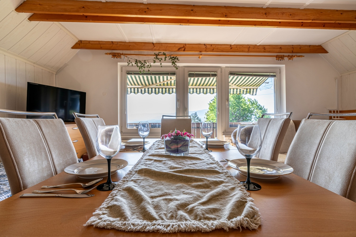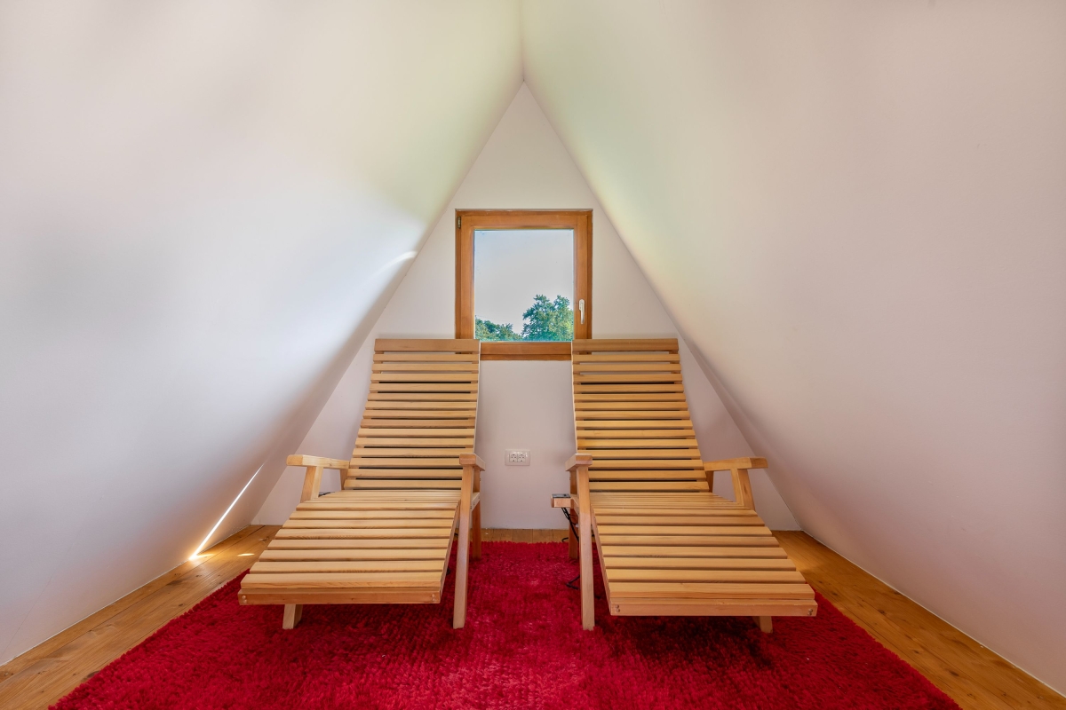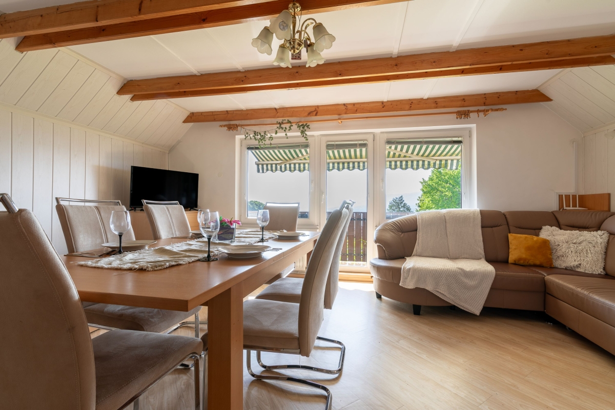 Nestled amidst the rolling hills of Dolenjska, this holiday cottage offers a lovely panorama of vineyards, Novo mesto, and the serene Krka River. The rustic cottage, steeped in history, was once used for storing housing tools and providing shelter during storms. Today, it has been lovingly restored, retaining its authentic charm. Accommodating up to six guests, the 3-bedroom cottage offers modern comforts like air conditioning, a fully-equipped kitchen, and wireless internet. Kitchen utilities include a dishwasher, microwave, oven, coffee machine and fridge with freezer. Additionally, the central heating and cosy fireplace infuse warmth into the interiors. The vineyard cottage is a full package of delights to enjoy with family or friends. Descend into the cellar, where homemade Cviček is born and cherished. Grill under the open sky in the picnic area while savouring the picturesque Dolenjska landscape. Unwind in the private infrared sauna, or savour seasonal organic vegetables from the garden. Vineyard cottage tourism offers an authentic Slovenian countryside experience, where history meets modern comfort. Sleeping Bedroom 1: A cosy bedroom with a double bed and wardrobe. Bedroom 2: A wood-panelled bedroom with a double bed and wardrobe. Bedroom 3: An attic bedroom with 2 single beds and a wardrobe. Bathroom The cottage’s bathroom has a shower and WC. Additional • Free Wi-Fi • Suitable for Elderly • Laundry and Ironing Facilities • Private Parking Space (Height 2m) • Private Garden • Child-Friendly • BBQ • Pets allowed • Wine Cellar (Guests can buy wine) • Free Bike Rental on Request • Paid Car Rental • SAT TV Please note that the tourist tax has to be paid one spot upon arrival: 2.5 €/person/day. Location This cottage is an excellent starting point for all active guests. In the surrounding area, you can cycle, walk on the beautiful hills, go boating on the Krka river, and at the nearby Prečna airport, those with more adrenaline can enjoy adventurous rides with a sports plane, skydiving or tandem paragliding. After all the activities, you can relax in the nearby spas: Terme Šmarješke Toplice, Dolenjske Toplice or Terme Čatež. The larger shopping centre Qlandia is located nearby, and in the city centre, there is a varied culinary offer with authentic local food. Whether you seek relaxation or adventure, this cottage is your ideal retreat. With Ljubljana and Zagreb just an hour's drive away, you're perfectly positioned to explore urban delights. The nearest international airport is in Ljubljana, about a 70-minute drive from the cottage.