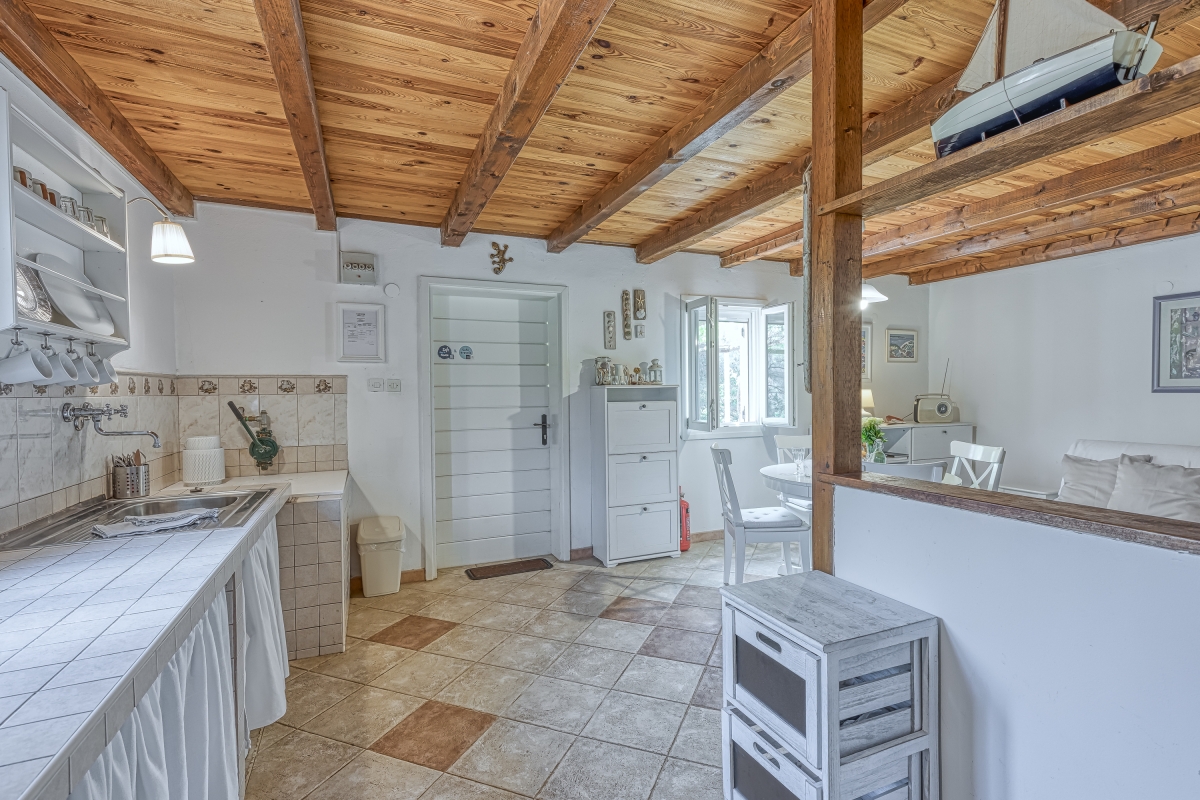 The house is situated near one of the most beautiful bays on the southern side of Lošinj island. Zabodarski bay it's famous for it's pebble stone beaches and clear waters. The house was in 2016 completely renovated in traditional stone work. The structure was built to minimize impact on environment by different features as follows: - completely solar powered to produce electricity - water is heated by solar power - partial use of rainwater (running water is also available) - laundry washed only by eco certified detergent - house is cleaned only by eco certified products - all recyclable waste is going to be recycled - minimum of electronical devices to reduce electronical pollution - use of traditional building material like stone and surrounded by threes to ensure pleasant stay during summer even without AC. The property features a sofa double bed for 1 guest in the living. There is 1 bedroom with a double bed and a sofa single bed.