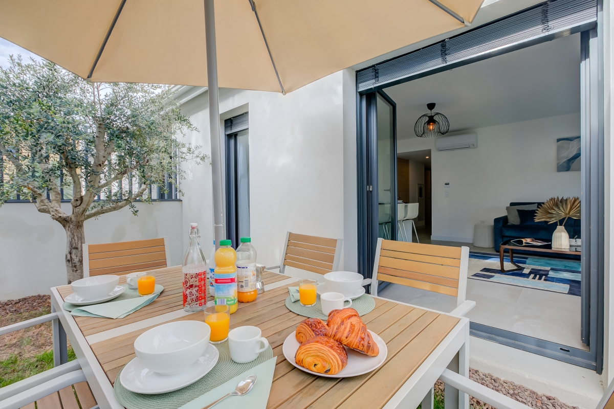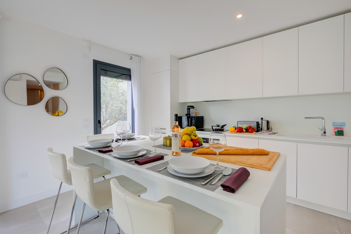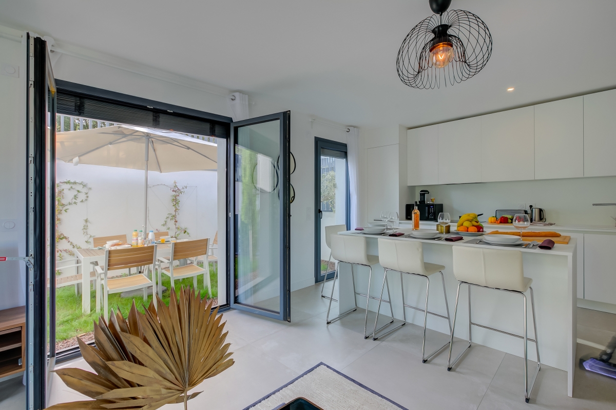 Appartement très récent et bien équipé, par contre bémol sur l'extérieur, le sol c'est de la terre/sable noir très salissant, aucune vue, et le passage de l'entrée de la résidence se fait devant le rez-de-jardin. De plus, le jardinet est infesté de rat qui sortent tous les soirs.La résidence est en cascade donc il y a des appartements en dessous malgré que ce soit un rdc. De plus, l'appartement est loué pour 6 mais seulement 4 places pour manger dedans, c'est décevant au vu de l'extérieur. On a en plus subi une grosse panne électrique bloquant toute la domotique de l'appartement dont la clim ainsi que, plus grave le portail de la résidence. Nous étions tous bloqués à l'intérieur sans solution pour sortir de la résidence... aucune aide ne nous a été apportée par l'agence de location. Nous avons été bloqués sans clim plusieurs heures et avons du nous même appelé la société de dépannage du portail qui n'a pas daignée se déplacer le jour même. Bref décevant.