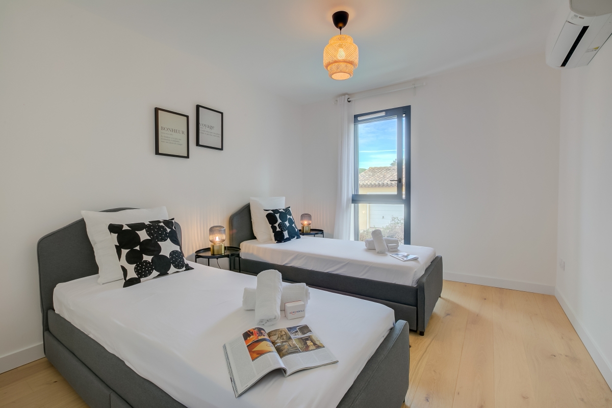 Sun-drenched beaches, azure waters and charming coastal resorts. Unwind on the French Riviera at this delightful holiday apartment with open-air dining. This beautifully presented apartment provides an excellent base for a carefree holiday and comfortably sleeps six guests. This is an ideal holiday home-away-from-home, peacefully situated less than a 5-minute drive from three excellent beaches, a private terrace, and a garden. The property’s spacious open-plan living room benefits from three floor-to-ceiling glass doors that fill the area with natural light and open onto the outside space. Stylishly furnished with a sofa bed, a Smart TV and a dining table with four chairs, the living area also incorporates a modern kitchen with a breakfast bar. The kitchen is fully equipped with; a coffee machine, dishwasher, induction hob, oven, microwave and fridge freezer. The garden enjoys a shady table with four chairs and provides the ideal spot to relax with an aperitif after a busy day exploring. Sleeping: Bedroom 1: The first bedroom is furnished with two single beds and a wardrobe Bedroom 2: The second bedroom is furnished with a double bed and a wardrobe Extra: There is also a double sofa bed in the living room Bathroom: Bathroom: The bathroom is equipped with a shower and a wash basin. Extra: There is a separate WC Additional: • Air conditioning • Child friendly • Wheelchair access • Free Wi-fi • Central heating • Washing Machine • Laundry facilities • Pets possible • Private garden • Private parking • Car recommended • Quiet location • Lift Location: Sainte-Maxime is a picturesque coastal town located in the southeastern part of France. Situated on the shores of the Mediterranean Sea, it offers beautiful beaches, a vibrant atmosphere, and rich Provençal charm. The town serves as a gateway to explore the wider region of the French Riviera. It is located just across the bay from Saint-Tropez (a 30-minute drive away) where visitors can enjoy a lively market every Friday (in Place des Lices). Here guests can find fresh local produce, crafts, and clothing. The property is also within easy reach of Port Grimaud (a 20-minute drive away) and Ramatuelle (a 35-minute drive away). Saint-Maxime is known for its beautiful sandy beaches, making it a popular destination for sun-seekers and water sports enthusiasts. The Plage de la Croisette (a 6-minute drive) and Plage de la Nartelle (a-3 minute drive) are two of the most renowned beaches in the area, offering crystal-clear waters and a range of amenities. In addition to its beaches, Sainte-Maxime boasts a vibrant town center with a lively atmosphere. The pedestrianised streets are lined with charming shops, boutiques, cafes, and restaurants, where visitors can explore and indulge in delicious Provençal cuisine and regional specialities. Other attractions include The Promenade Simon Lorière (a 5-minute drive away) which provides incredible views of the coastline and the Jardin Botanique des Myrtes (a 7-minute drive away) which showcases a beautiful collection of Mediterranean plants. For golf enthusiasts, there are several golf courses in the vicinity of Sainte-Maxime, offering scenic views and challenging play - Golf Blue Green is only a 6-minute drive away The nearest international airport is Nice (NCE) is approximately a 65-minute drive from the accommodation.