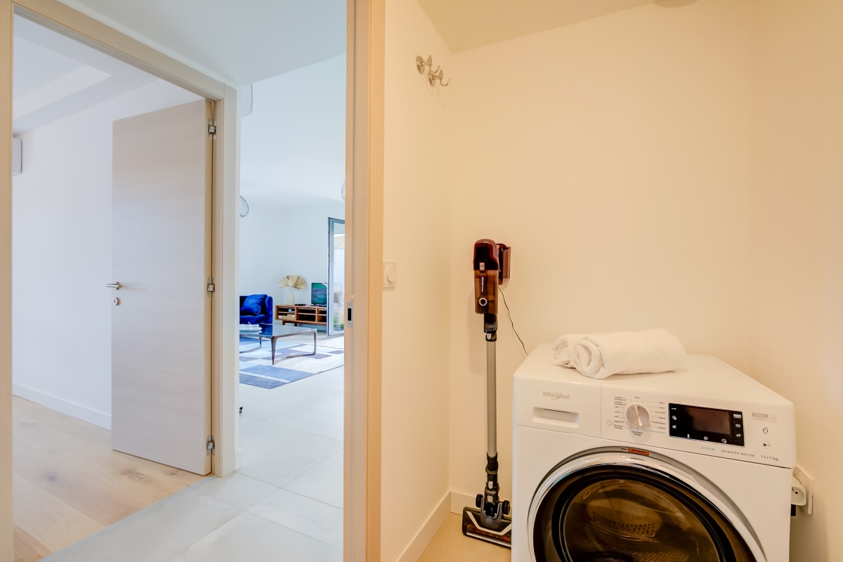 Bel appartement propre et fonctionnel dans résidence sécurisée et neuve. Il y a une prise pour charger véhicule électrique (prise normale) et un endroit pour laisser les vélos et les charger s’ils sont électriques. Comme commenté par un client Airbnb, nous avons rencontré un problème de bruit avec la climatisation des 2 chambres même si éteinte. Petite télé pour grand séjour. À 25 min à pied du centre ville.