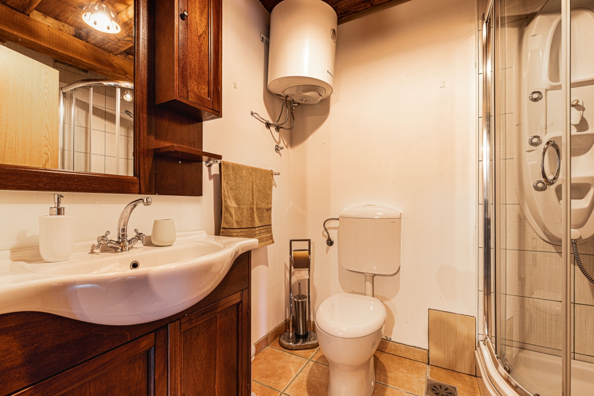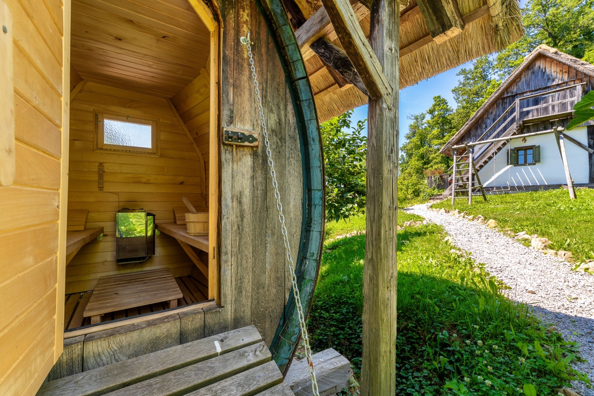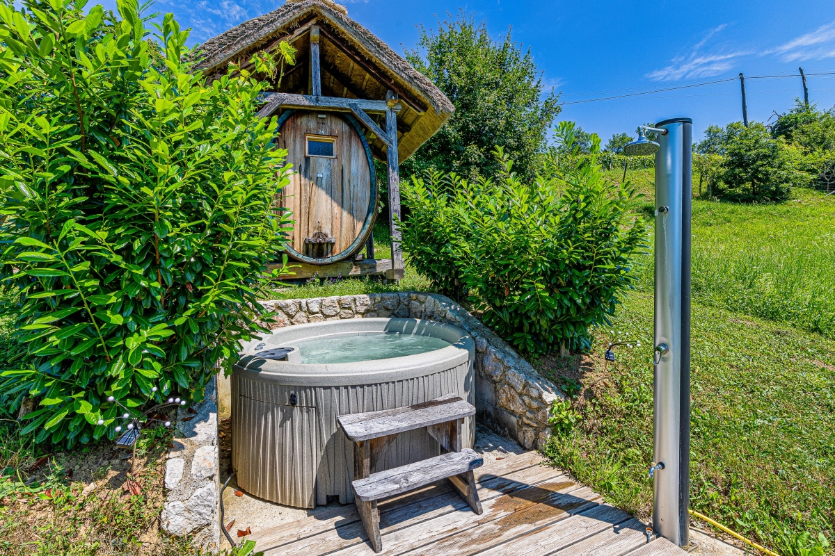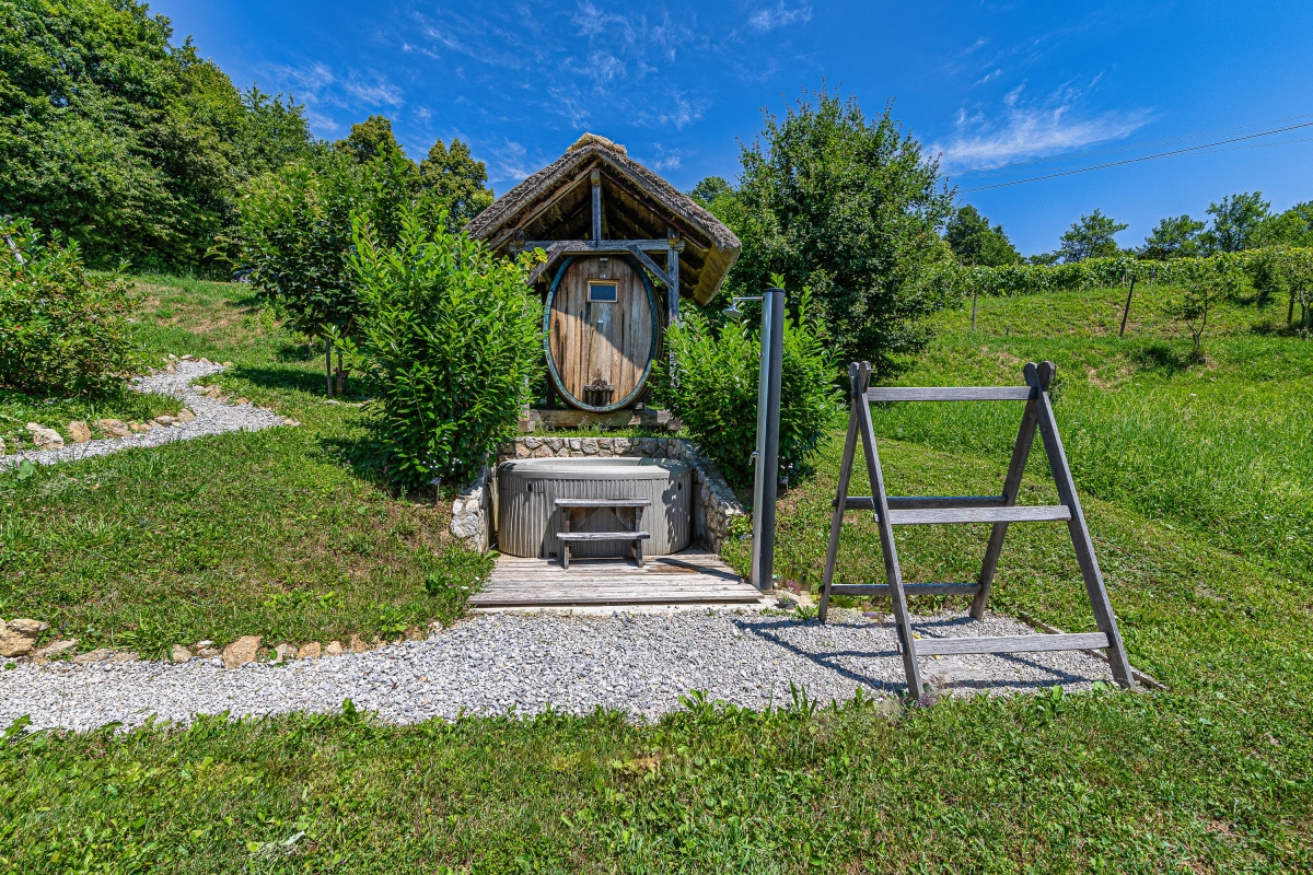 Surrender yourself to the unique beauty of Dolenjska at this deliciously sunny, tranquil and lush Vineyard cottage on the gentle hills of Otočec! Vineyard cottage tourism is a unique, authentic, and attractive tourist experience with a genuine offer of ultimate relaxation in the Slovenian countryside. This traditional and perfectly preserved 1-bedroom cottage for up to 4 guests is ideal for families, elderly guests and couples. Inside, there is every modern amenity to enjoy a carefree and comfortable self-catering stay all year: this includes air-conditioning, central heating, flat-screen TV, Wi-Fi and kitchen utilities. The cottage features a picturesque open-air dining area and a wine cellar where the host welcomes you and invites you for a tasting. In summer, you can enjoy a rustic experience and sleep in the attic under a thatched roof. In the immediate vicinity is a Finnish sauna in a 7,000-liter wooden barrel and a massage tub for total relaxation. You can also try homemade bread, salami and cheese. Seasonal vegetables and fruits from the garden are available to guests. It is possible to visit Matjaž's homestead, see the cultivation and indulge in wine tasting. Sleeping The bedroom has a double bed. There is a double sofa bed in the living room to sleep 2 guests. Bathroom The bathroom in the cottage has a shower and WC. Additional • Free Wi-Fi • Sauna • Washing Machine • Private Parking Space • Fenced Private Garden • Outdoor Massage Tub • Extra Child-Friendly • BBQ •Pets allowed • Suitable for Eldelry Please note that the tourist tax is to be paid one spot upon arrival: 2,5€ per person per day. On request and pre-booking: We can also organize a sound bath (gong, crystal bowls,...), Indian head massage, acupressure massage on a special ergonomic chair, apitherapy, electric bicycle rental and a ride with old timers through the wine hill. Guests can also receive a key to the cellar and pour their wine for an additional fee. Guests staying for more than 5 days are invited by the owner to the homestead. There, he presents them with life in the Dolenj countryside then and now and the 20-minute multi-vision "The Story of Cviček". During dinner and wine tasting, the host presents the tourist offer and life in Dolenjsko and in Slovenia. Location Nestled in a picturesque setting, just a short drive from your holiday rental, you'll discover the mesmerizing Otočec Castle, a stunning medieval fortress that stands on a small island in the middle of the Krka River and provides a unique glimpse into Slovenia's rich history. Close by, there is also a golf course to enjoy. If you're craving water-based fun, then the banks of Krka River are about a 30-minute drive away, perfect to relax, swim, or even rent a kayak to explore the river's tranquil waters. Šmarješke Toplice Spa is also close at hand, just a 10-minute drive from here. When it comes to dining, Otočec offers both traditional Slovenian cuisine and international flavours. Indulge in local delicacies such as potica (rolled pastry with various fillings) or try freshly caught fish from the river. For your convenience, several amenities are within easy reach of your holiday rental. Supermarkets, pharmacies, and the mall can be found within a 5 to 10-minute drive, ensuring you have everything you need for a comfortable stay. During winter, you can also head to Gače ski resort, which is just a 20-minute drive from Zidanice. The nearest international airport is in Ljubljana, about a 70-minute drive from the cottage.