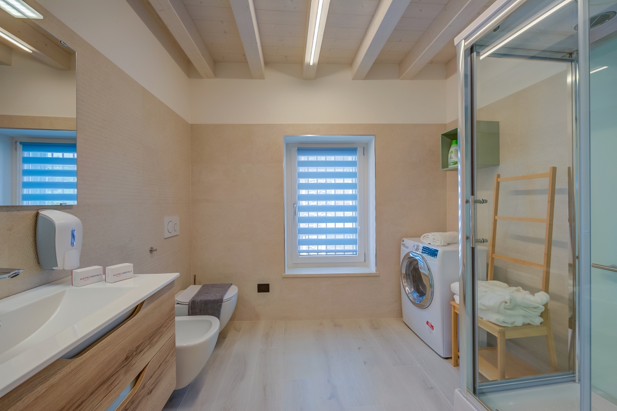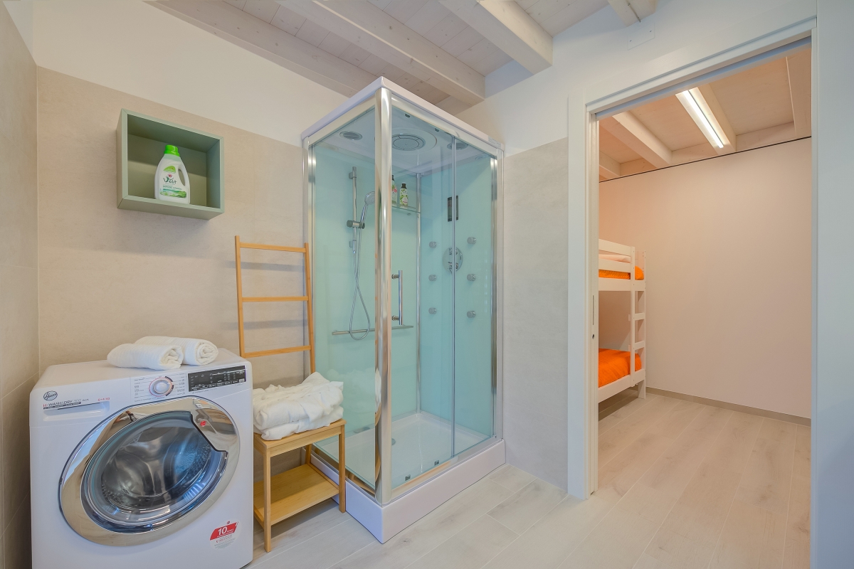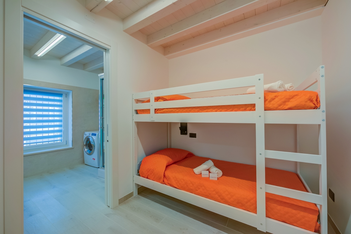 Palazzo Palermo 1817 is a completely renovated, antique palace, which has been converted into 3 stylish apartments. This first-floor flat sleeps 4 people and makes an ideal base for guests to explore Lake Garda and the surrounding area. The ultra-modern kitchen is equipped with an induction hob, microwave, dishwasher, fridge/freezer, water purification jug and coffee machine, making self-catering a breeze. There is also a flat-screen TV, an attractive dining table and chairs for casual meals. Sleeping Bedroom 1: The airy master bedroom has a double bed, a dressing table and a wardrobe. Bedroom 2: The second bedroom has a bunk bed and an ensuite bathroom. Extra: A pouffe converts into a single bed for a child or teenager. Bathroom The modern bathroom has a hydro-massage shower, basin, bidet, washing machine and WC. Additional Services • Free Wifi • Double Smart TV • Air conditioning • Underfloor heating • Security safe • Hairdryer • Waste disposal • Public parking, car recommended • Cash security deposit required • Access to the property is by token and the lights are activated through the use of a magnetic card. Pets are allowed on request. However, guests cannot leave their pets behind during the day as they will have to take the card and there will be no light or air conditioning in the house. Location The apartment is in the historic centre of Salionze. It is only a few minutes walk from a mini-market, pharmacy, bar and an excellent bakery. Its location is ideal for those who want to reach the amusement parks of Lake Garda, such as Gardaland (10 minutes) and Movieland Studios (15 minutes). For keen cyclists, the apartment is next to the cycle-pedestrian path that runs along the river Mincio and connects Lake Garda with Mantua. The cities of Verona (35 minutes) and Mantua (40 minutes) make easy day trips. The town of Valeggio sul Mincio, known for its excellent restaurants, is 10 minutes by car and the romantic Borghetto, is just 15 minutes. Peschiera del Garda (10 minutes) hosts a weekly market (every Monday morning) and is the perfect place to pick up the best local produce to cook at home. Verona airport is only 25 minutes away.