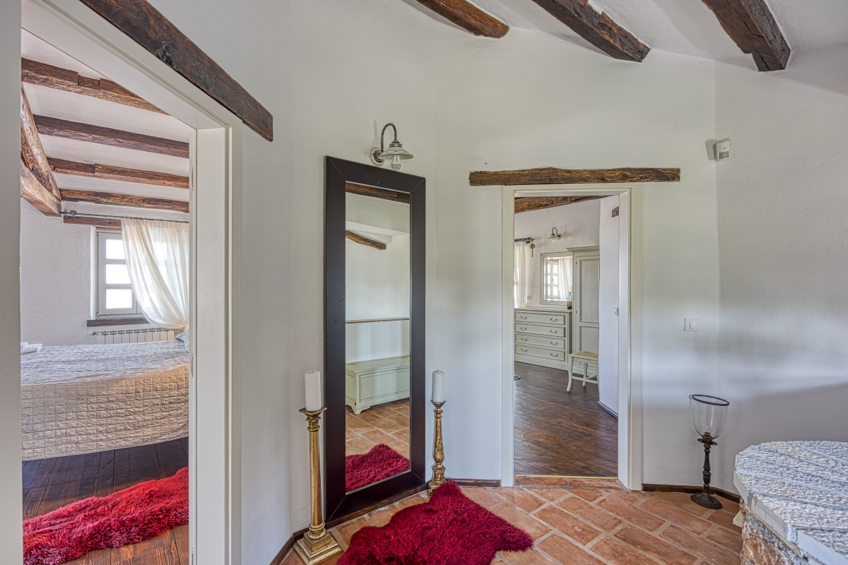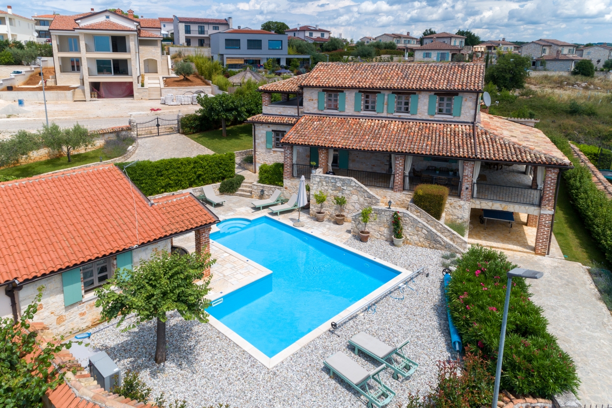Enjoy the ultimate holiday experience in Istria with this beautiful 4-bedroom pool villa, a perfect escape for families and friends! With 243 m2 of living space and a total property area of 744 m2, this single level provides ample room for up to 10 guests, ensuring privacy and comfort for all. Step onto the upper floor terrace and soak in the breathtaking views of the crystal-clear Adriatic Sea. Outside, indulge in the joys of the Mediterranean lifestyle. Take a dip in the 50m2 pool, bask in the sun on the comfortable sun loungers, or enjoy alfresco dining with a view of the Istrian Peninsula green countryside. Children and adults alike will delight in the trampoline, darts, and other entertainment options available. Inside, the air-conditioned villa effortlessly blends traditional charm with modern amenities, featuring a spacious living room with a romantic fireplace, a fully equipped kitchen with a dishwasher, and a dining area for enjoying delicious meals. The bedrooms, each with an ensuite bathroom, offer comfort and tranquillity, while a separate annexe near the pool provides an additional private retreat. The villa is surrounded by lush greenery, creating a tranquil and secluded oasis. The beautifully landscaped garden adds to the villa's charm, and private parking spaces, ensure convenience and peace of mind. Sleeping Main building Bedroom 1: A beautiful bedroom with twin joinable beds and an ensuite bathroom. Bedroom 2: A sea-view bedroom with a double bed, an ensuite bathroom, terrace access and a wardrobe. Bedroom 3: A soothing bedroom with a double bed and ensuite bathroom. Poolside Annexe Bedroom 4: There is a double bed and a double sofa bed along with an ensuite bathroom and direct terrace access. Bathroom 3 bathrooms on the property have a shower and WC. The bathroom ensuite to the bedroom has a bath with shower and WC. Additional • Private Outdoor Swimming Pool (heated) • 2 Private Parking Spaces • Free Wi-Fi • Pets Allowed • Ironing Facilities • Smoking Permitted (only in living room) • Flat-screen HD TV • Gaming Area • Air-conditioning • BBQ • Washing machine • Dishwasher • 8 Sun Loungers • Car recommended • Hairdryer • Sea view • Extra child-friendly • Nespresso coffee machine Location Attractions and local activities are wine tours or olive oil tours, bike rental, karting, adrenaline park, water park, trekking routes or ski lift Poreč is close at hand. You can dive or sail and try riding. The old town of Sveti Lovreč is within walking distance and it borders the cities of Poreč and Rovinj, which are worth a visit. Rovinj is a 20-minute drive away and Poreč is only 15 minutes from here. In Lovreč itself, there is everything necessary for everyday stay including a grocery store, pizzeria and coffee bar, and in the nearby Lim Channel, which is a famous fish and shellfish farm, there is one of the leading fish restaurants in Istria. Within a 30-35 minute drive guests can reach various other tourist spots like the heavenly Brijuni Islands, with the ferry link just a 30-minute drive away in Fažana, the windsurfing hub at Pomer and the millennial city of Pula. Additionally, the idyllic seaside towns of Piran, Koper and Izola are under an hour’s drive from here. The nearest international airport is Pula.