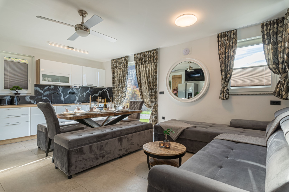 We really liked the apartment. Everything was clean and well-maintained. The kitchen had all the necessary tools for preparing meals. The home's amenities were of a high standard. The pool and sauna made our stay more enjoyable, and we gladly used them. We really liked the location of the house - peaceful and quiet surroundings. We would gladly return to this place!