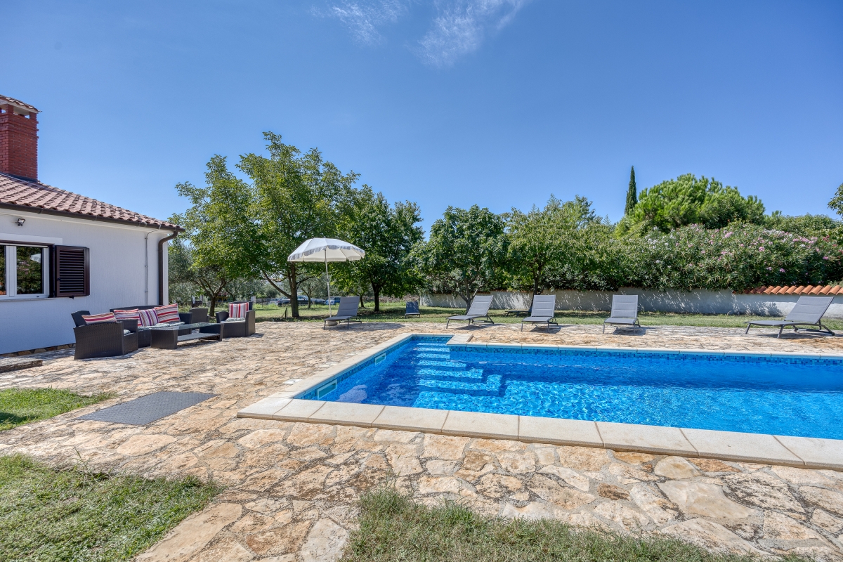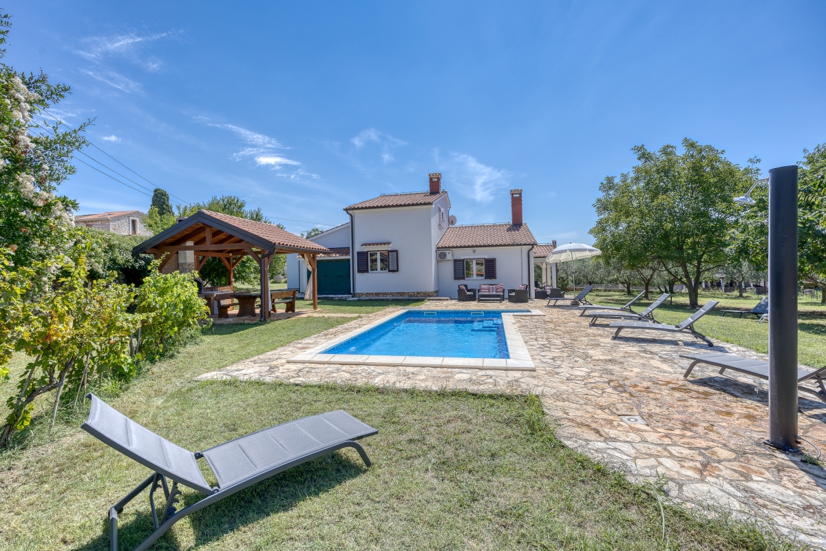 Sun, culture, vineyards and olive groves – this holiday retreat is within reach of it all - or you can simply get lost in a book and relax by the pool. This spacious family villa is quietly located in a small village on the Istrian peninsula, a 20-minute drive from the popular resort of Poreč. The accommodation is arranged over two floors and comfortably sleeps 8 guests. Designed for outdoor living the property is surrounded by a private garden and enjoys a large pool, a spacious sun deck, an outdoor shower and a covered al fresco dining area with a BBQ. Inside, the bright and spacious, open-plan living area incorporates; a dining room with a large table and chairs that leads out to the terrace, a TV room with comfortable seating and a fully equipped kitchen fitted with; a gas cooker hob, an american-style coffee machine, a dishwasher, an oven, microwave and a fridge freezer. The location of the villa makes it an ideal base for many day trips, but for guests who choose not to leave the area, there are several restaurants and a supermarket nearby in addition to the local beach and marina which are only a 6-minute drive away. The owner does not accept any groups of teenagers and parties are not allowed. Sleeping Bedrooms 1-4: All 4 bedrooms are furnished with a double bed and a wardrobe. Three bedrooms enjoy access to a terrace. Bathrooms Bathroom 1: The first bathroom is equipped with a bath and shower, a bidet, a washbasin and a WC Bathrooms 2 & 3: The second and third bathrooms are fitted with a shower, a washbasin and a WC Additional • Private outdoor pool • Terrace • Sea View • Private Garden • BBQ • Outside dining • Free Wi-Fi • Air-conditioning • Washing machine • Laundry facilities • Laptop friendly workspace • Car recommended • Private parking for 3 cars • Child friendly • Pets possible (maximum 2) • No smoking (Seasonal availability for the Swimming Pool: (01 May – 01 Oct) Location Vabriga is a small village close to Poreč in the Croatian region of Istria. Nature enthusiasts will find plenty to explore in the surrounding countryside which is characterised by rolling hills, vineyards, picturesque Istrian villages and olive groves, with hiking and biking trails that wind through the landscape. The Parenzana Trail (a 12-minute drive), a former railway track is worth exploring and there are several wineries within a 15-minute drive from the accommodation. Poreč one of the most popular resorts in Croatia is a 20-minute drive away. With its cobblestone streets, historical architecture and vibrant cultural scene, the town has become a sought-after destination for travellers seeking a blend of relaxation and exploration. In Poreč’s Old Town visitors can explore an array of charming boutiques, galleries and cafes nestled amongst the ancient Roman, Byzantine and Venetian architecture. The Euphrasian Basilica (a 20-minute drive), a UNESCO World Heritage Site, is particularly worth visiting. The picturesque village of Červar-Porat (a 10-minute drive) is also worth visiting where guests can explore waterfront restaurants, cafes and shops in the small marina. It is also possible to hire boats here to explore the coastline from the sea. Poreč offers a choice of beaches including; Brulo Beach (a 22-minute drive), Plava Laguna Beach (a 20-minute drive away) and Zelena Laguna Beach (an 18-minutue drive), here guests can relax in the sun or engage in water sports like kayaking, paddle boarding, and snorkelling. Children will also enjoy the Istralandia Water Park (a 20-minute drive) which provides a fun-filled day of water-based fun for all ages. Golf enthusiasts can visit the nearby Adriatic Golf Club in Savudrija (a 40-minute drive), which offers an 18-hole course with views of the sea and surrounding landscapes. There are also many tennis courts on the Poreč Riviera an indoor aquatic centre, wellness and fitness centres, mini golf and opportunities to get involved with diving, sailing, surfing, sailing, water skiing, canoeing, rowing and riding. The closest international airport is Pula (PUY) approximately a 50-minute drive away from the accommodation.