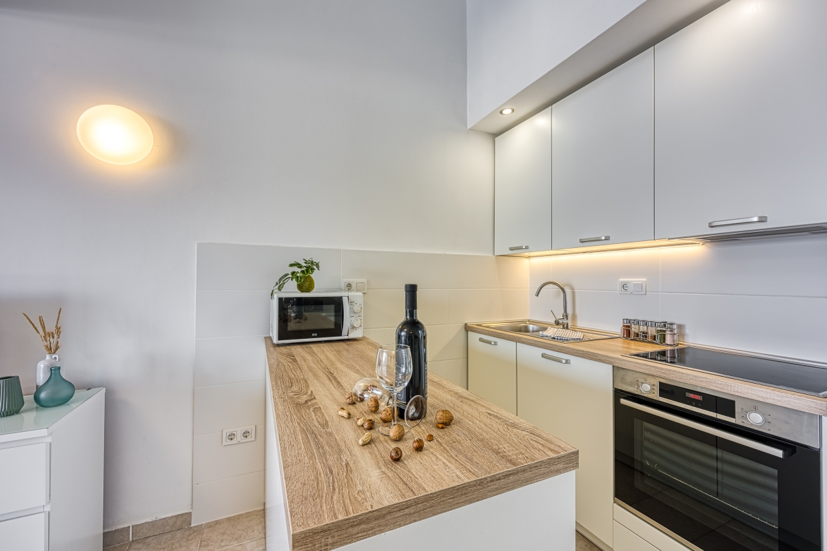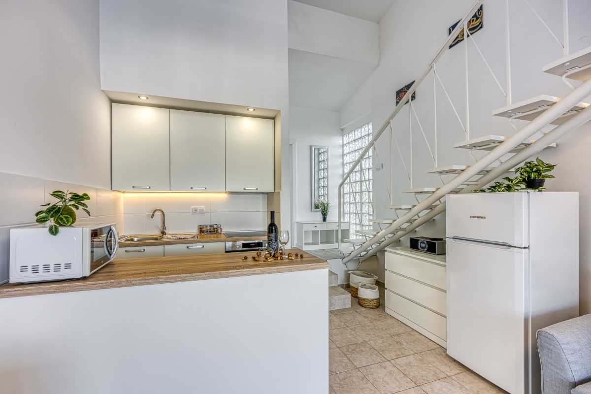 A newly refurbished flat just a few meters from the sea, this apartment makes an idyllic holiday retreat. Whether you want to relax on the beach or enjoy many of the activities available on Losinj, guests are in the perfect spot to experience everything the island has to offer. The apartment sleeps 4 people in comfort and consists of an airy, open-plan living area with a sofa, chest of drawers with a flat-screen TV and a smart kitchen, separated by a breakfast bar. The kitchen is equipped with an induction hob, oven, microwave, dishwasher, fridge/freezer and a coffee machine. The terrace, overlooking the sea, has a dining table and chairs for outdoor meals, and a sun lounger for guests to relax. Sleeping Bedroom: The mezzanine bedroom is over the living area and partially closed off from the room. It has a double bed, a wardrobe and a lovely balcony overlooking the sea. Extra: The sofa bed in the living room can be converted into a comfortable double bed. Bathroom The bright bathroom has a shower, washbasin, WC and washing machine. Additional • Free WiFi • Air conditioning • Pets possible by prior arrangement (charges may apply) • Hair dryer • Security safe • Outdoor dining • BBQ • Private garden • Private parking, car not necessary. Location Losinj island together with Cres island with which is connected by bridge makes is the largest island archipelago in the Adriatic, and although it remains unspoiled by development, there are plenty of adventures to be had. If you can tear yourself away from some of the most beautiful beaches in the Mediterranean then the town of Mali Losinj (20 minutes walk) is a lovely destination. Dating from the 12th Century, and famous for its large harbour, the town is blessed with some beautiful Renaissance buildings, churches and monasteries. The Museum of Apoxyomenos is dedicated to an ancient Greek statue which is almost completely intact. The Aromatic Garden is not only a fragrant retreat but also serves delicious local food. For self-catering in addition to supermarkets there is a small daily market in Mali Losinj and an excellent fish market where you can purchase the freshest fish to cook at home. There are several water sports schools on the island where visitors can learn to sail, windsurf or surf, and the pristine sea means that there is excellent visibility for snorkelling and scuba diving. Away from the water you can parachute, rock climb and take a cycle tour through unspoiled countryside. Rijeka Airport is the nearest airport, reached via a ferry (2 hours 30 minutes) or Pula Airport (3 hours 15 minutes) also, via a ferry.