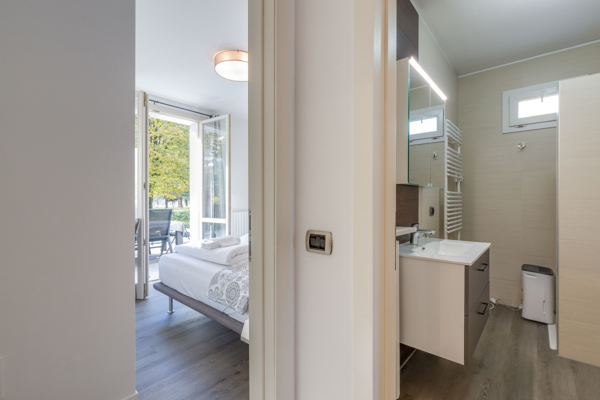 Located within the scenic park of Porto Letizia, this lake-view villa apartment enjoys its own private garden, and inside is fully equipped for accommodating families and groups of 6. The open-plan living room offers a stylish ambience with a modern sofa bed and a fully-functional kitchen cum diner. Two double bedrooms (each furnished with a double bed) are complemented by a modern fitted shower room with WC. Outside, the private garden offers a lovely family-friendly setting and can be directly accessed from the living room. Plus, the apartment has Wi-Fi access and free guest parking for added convenience. Amenities • WiFi access • Electric Radiators • Pets considered • Communal resort facilities • On-site coin-operated launderette • Free guest parking • Free bike rental (for 2 hours only) • No wheelchair access Location Located in Porlezza on Lake Lugano, the 3-bedroom retreat is situated within the park of the Porto Letizia holiday residence. The shared family-friendly park features meandering footpaths, a communal beach with SUP and watersport hire, two children’s play areas and the main Palazzo building with on-site reception, stylish café bar, contemporary Panama Italian restaurant and more. From the resort’s central location along ‘Via Prati’, guests will easily be able to reach the town amenities, the bus and ferry links and the main lake road of Porlezza (2-5 minutes walk away). Perfect for a fun and varied holiday on the Italian-Swiss Lakes, the resort is within easy driving distance from the year-round lake capital of Lugano and the picturesque small city of Menaggio on Lake Como (22-28 minutes drive away).